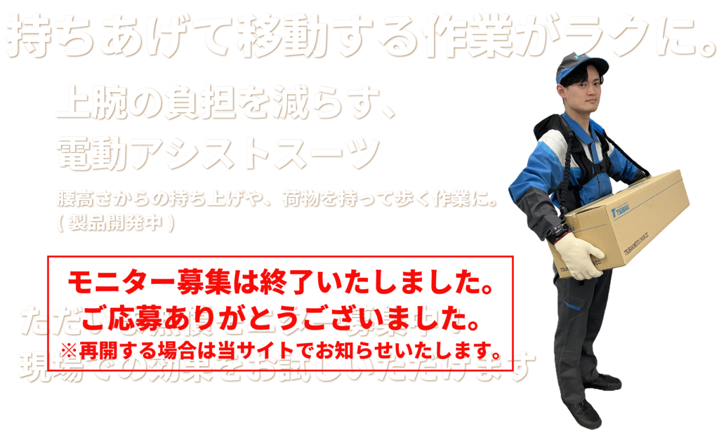 現在、実際の作業を通じて改良を進めるため、無償モニター企業様を募集しています。