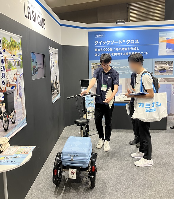 労働力不足やEC市場の拡大により流通形態の変化への対応が求められる中、豊富な製品群で省人化・効率化を提供する展示を行いました。4日間でのブース来場者は約4000名。展示品のひとつとして「LA SI QUE(らしく)」を展示し、活用を想定した時の具体的な市場ニーズを収集できました。また、「なんだかすごくワクワクする車両。個人的に欲しい。」など個人利用を想定した嬉しいコメントもいただきました。
